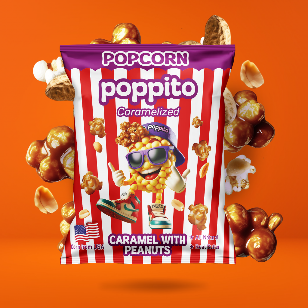 Съставки: 29,28% захар, 22,56% фъстъци, 12,78% царевица ( произход САЩ), глюкоза, краве масло, вода, сол, емулгатор (соев лецитин Е322). Риск от алергени: мляко, фъстъци и соя. Да се съхранява на хладно и сухо място далеч от пряка слънчева светлина. Продуктът е пакетиран в защитна среда (азот). Указания за употреба: Отворете плика. Приятен апетит!